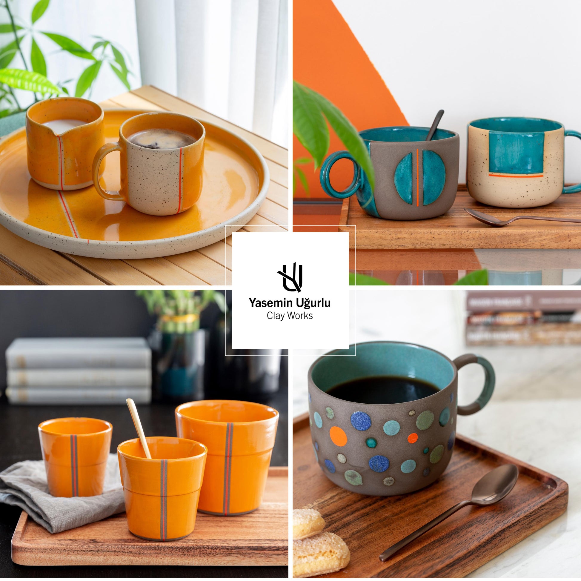 It was love at first sight!!! I started flicking through the pieces in Jasmine Clay Works, all really super! Beautiful colors, lovely and balanced decorations. All the colors are uplifting and happy. The mugs arrived well protected and the quality of the items is great! They look elegant refined and unique! We love them!